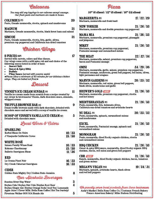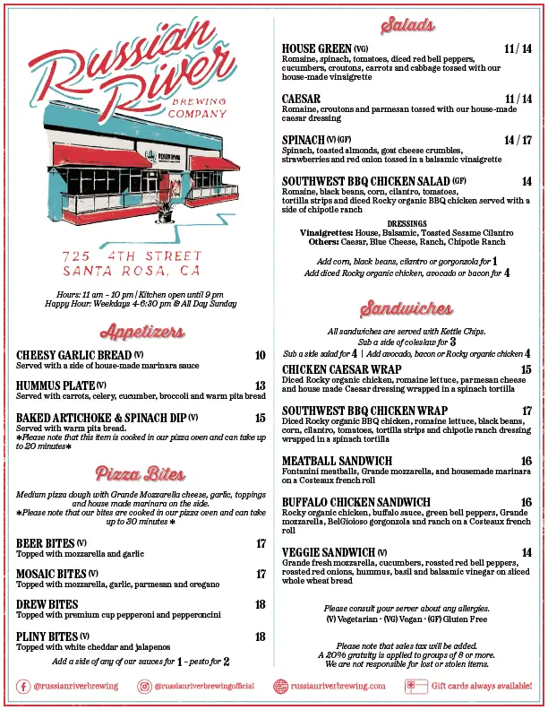 Santa Rosa Pub Menu